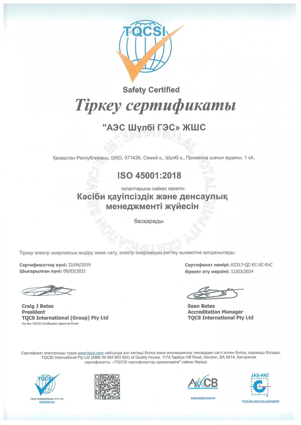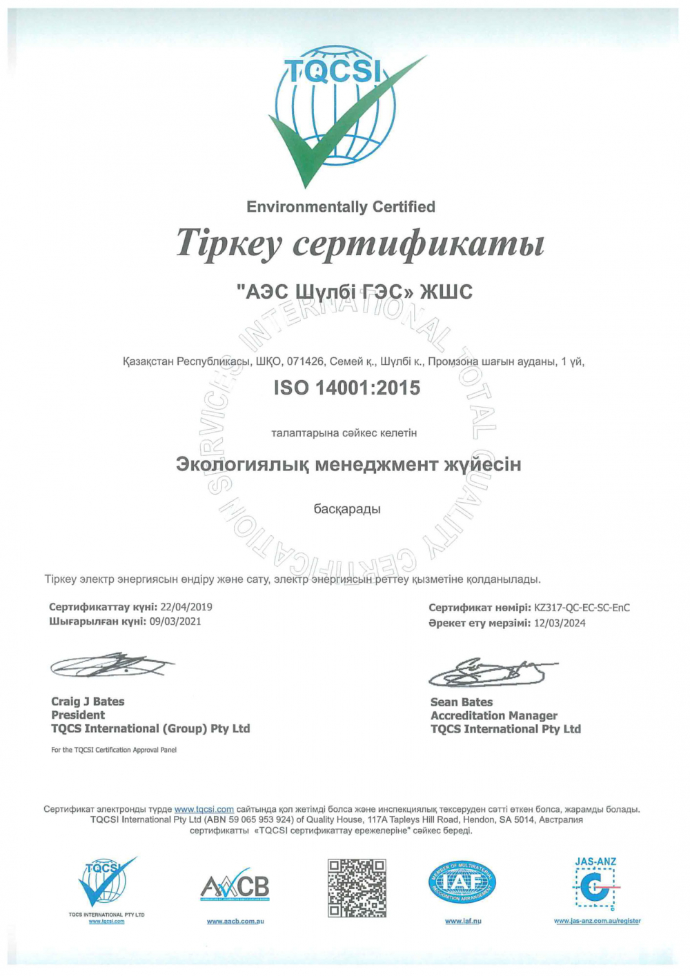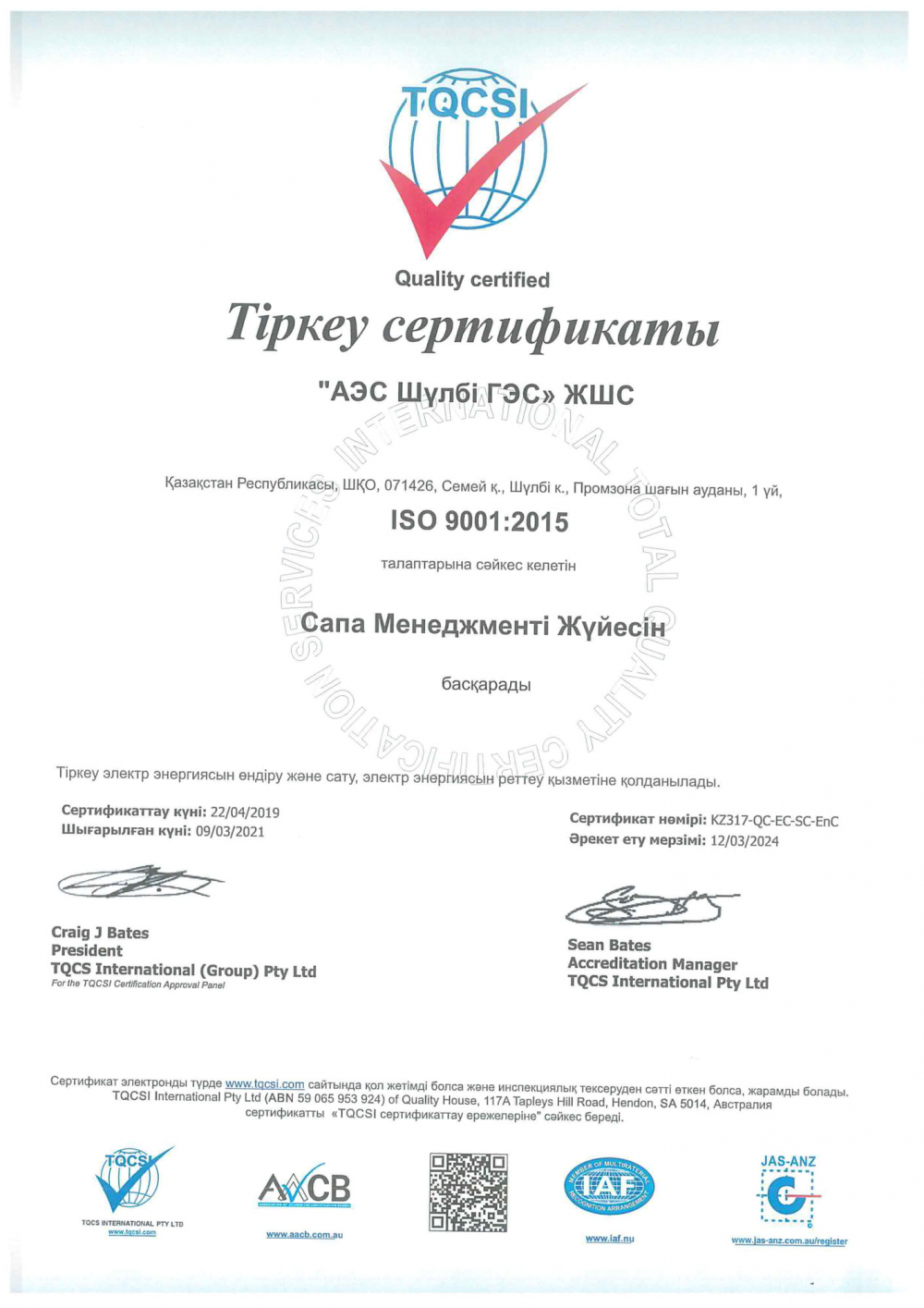 «АЭС Шүлбі ГЭС» ЖШС-нің 2019 жылға арналған кіріктірілген менеджмент жүйесі саласындағы мақсаттары